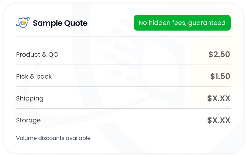Contact us with details about your products, order volume, and where you ship. We’ll provide a comprehensive quote covering sourcing, quality control, warehousing, and fulfillment tailored to your business needs.