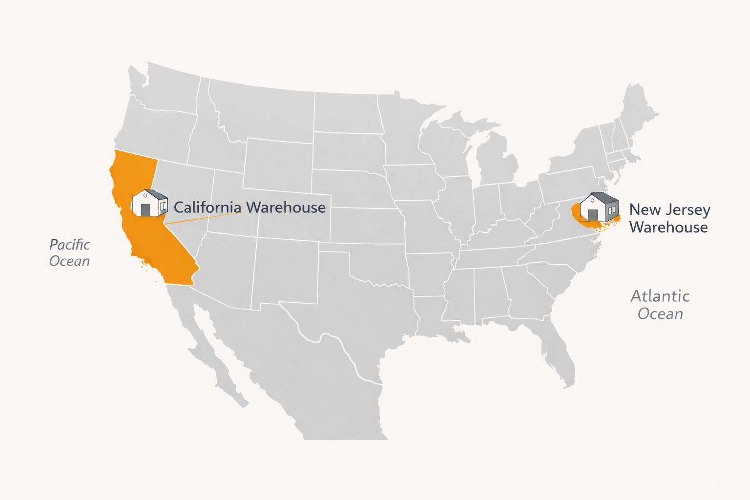 Our California and New Jersey warehouses enable 2-4 day delivery to 80% of America using affordable ground shipping. This dual-coast strategy reduces your shipping costs by up to 40% while getting products to customers faster than single-location competitors.